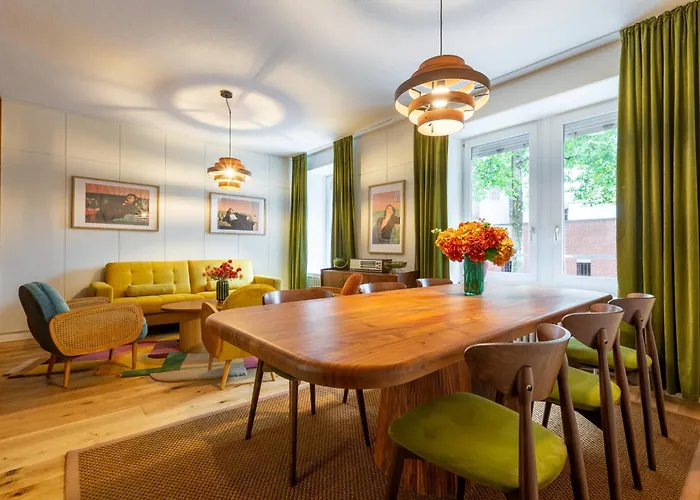 El Retro Suite Stylish 2 Bedroom Apartment Near Central está equipado con una cocina bien equipada con electrodomésticos para preparar sus propios platos. El aeropuerto Internacional de Zúrich está a 10 minutos en coche, y la parada de autobús Nordstrasse, a poco más de 5 minutos en coche del establecimiento.
